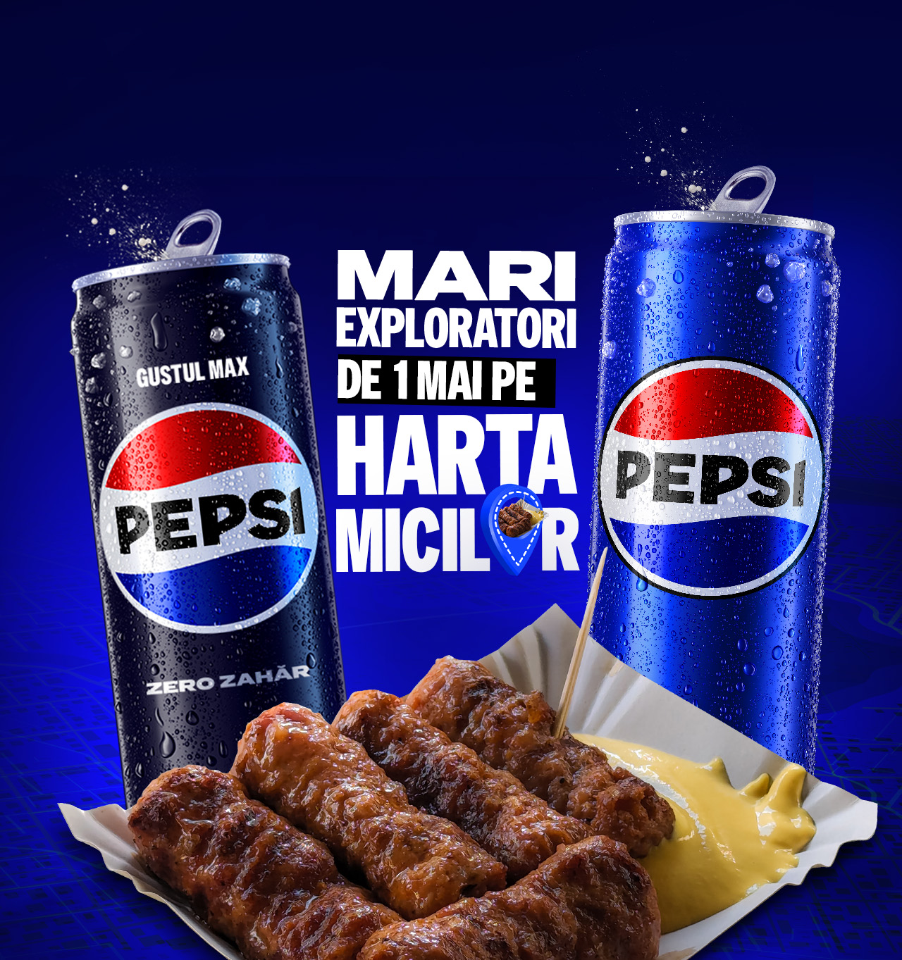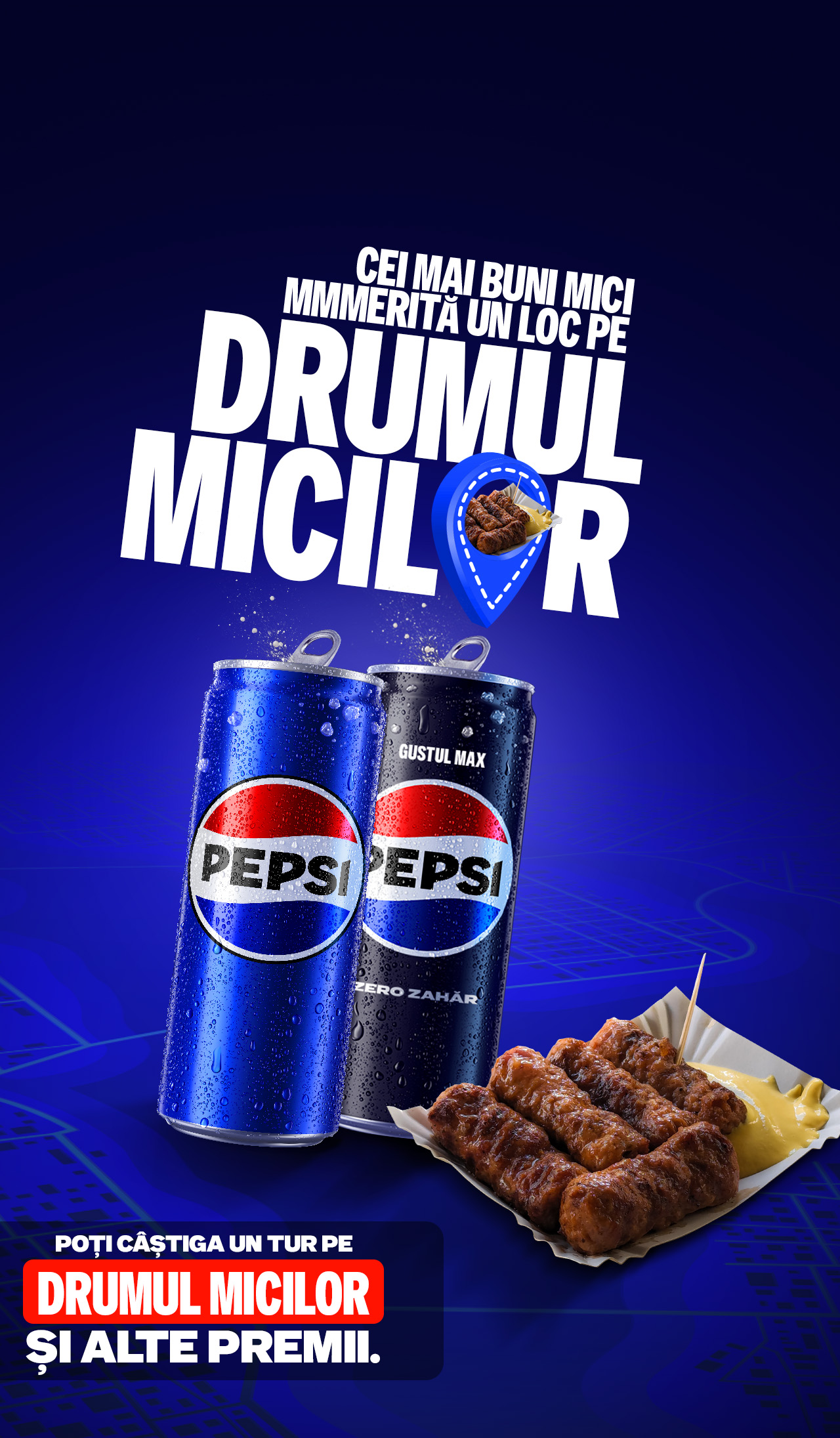 Înscrie localul tău favorit cu mici și poți câștiga premii de grătar. Pentru ca mici sunt BUUUNI cu PEPSI ZERO.